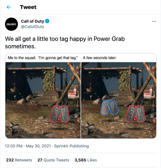 The following is a sample series of memes and posts I wrote and helped create. In a time where there was some player controversy around COD, I opted for unique ideas that felt natural to their brand by staying away from “try-hard” messaging, instead opting for quick and clever lines that let the assets and partnerships do the talking.